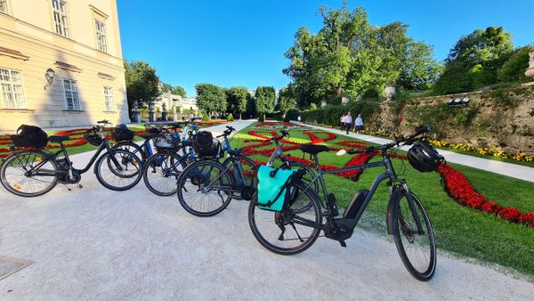 The Salzburg tour lasts about 6 -7 hours, depending on how long we take to eat lunch along the way and on the overall walking or E-bike riding pace of the group. We can take a relaxing lunch break to sit and eat on park benches in a lovely Baroque Garden next to several ponds at the magnificent Hellbrunn Palace or at one of many other picturesque nature locations next to other stunning palaces en route.